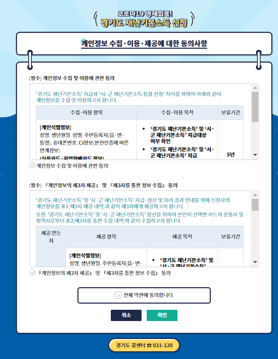 경기도가 코로나19로 위축된 경제위기를 극복하기 위해 도민 1인당 1회 10만 원을 주는 재난기본소득을 지급합니다. 경기도 재난기본소득 지급대상은 전 도민으로, 소득과 나이 상관없이 2020년 3월23일 24시 기준시점부터 신청일까지 경기도민이면 누구나 지급받을 수 있습니다. 아울러 신청 및 접수는 사회적 거리두기에 따른 접촉 최소화 및 감염예방을 위해 ▲온라인 접수 ▲읍면동 행정복지센터 또는 지정금융기관 접수 ▲찾아가는 접수로 다양화할 방침입니다. 지급