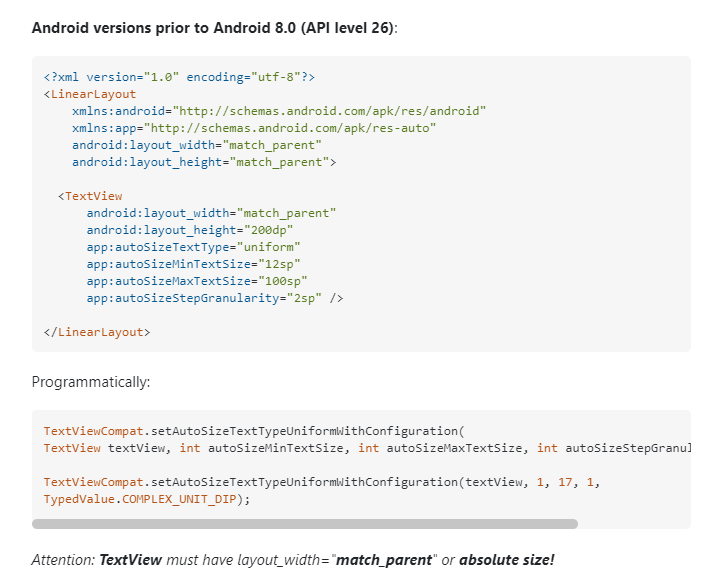 TextViewCompat.setAutoSizeTextTypeUniformWithConfiguration(textView, 1, 17, 1,