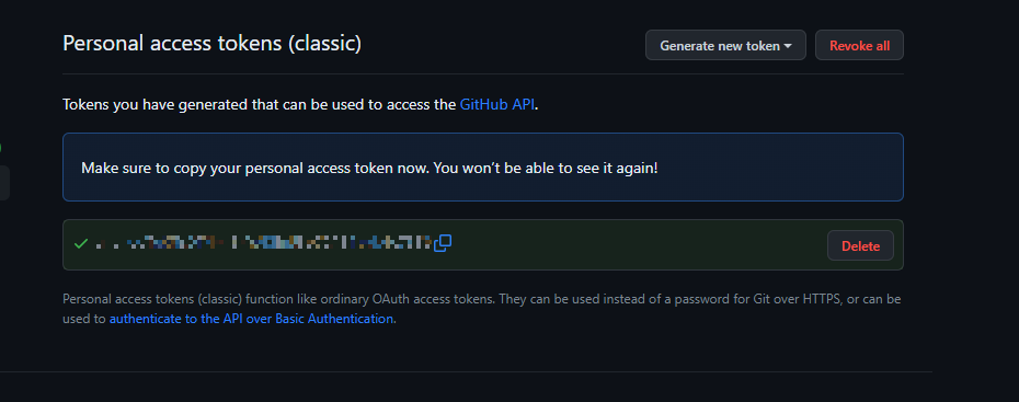 생성된 토큰을 복사하고 필요한 곳에 사용한다.