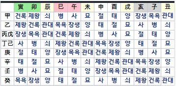 천간과 지지를 대입하여 나타나는 천간의 모양을 읽어내는 신살을 12운성이라고 합니다.