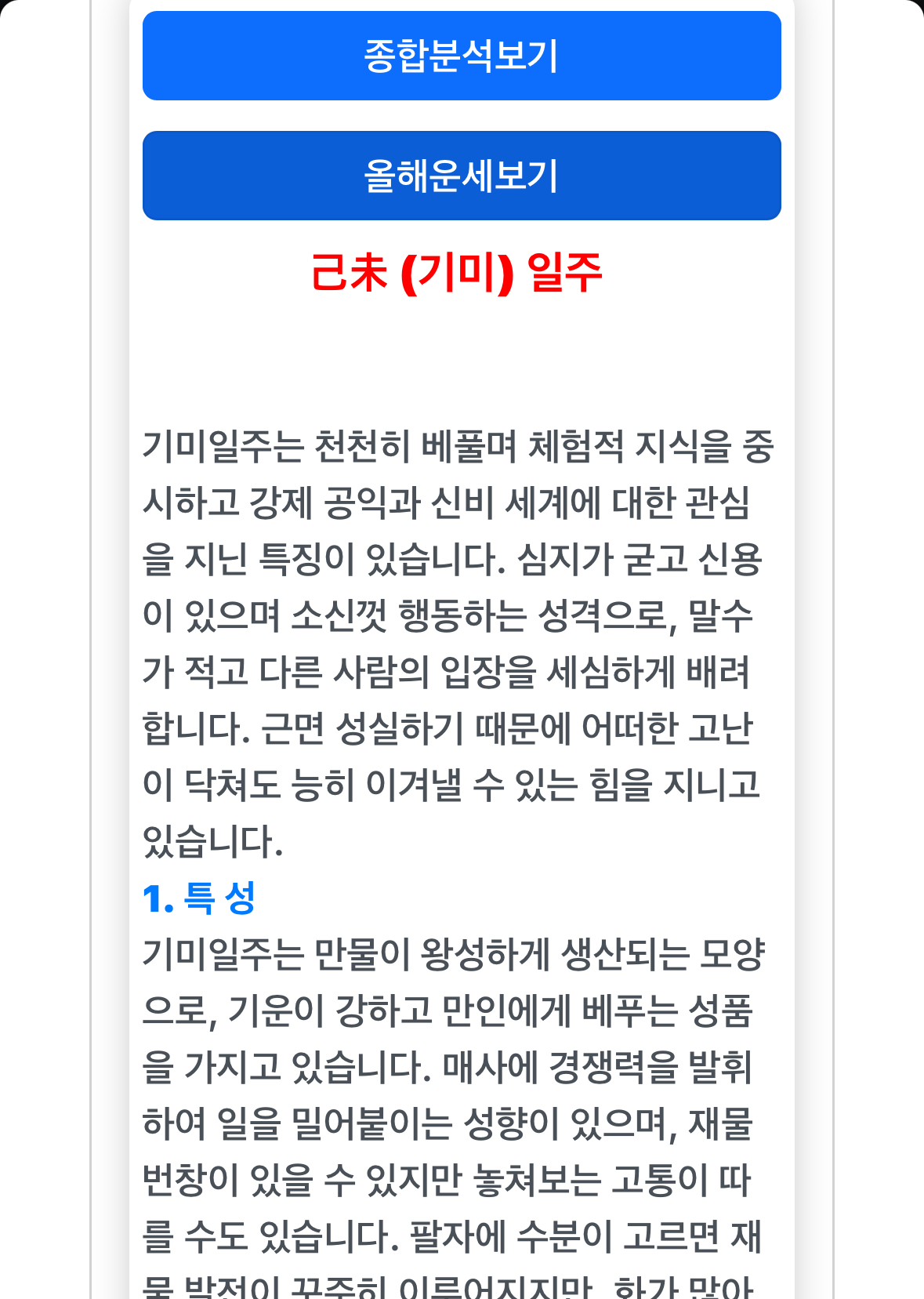 하지만 겸손하지 못하고 욕심을 내면, 탈이 나게 되고 달빛을 보며 외롭게 지내듯이 생활하게 될 수도 있습니다. 아래 무료만세력사이트에서 일주별성격과 무료올해운세를 보실수있습니다.