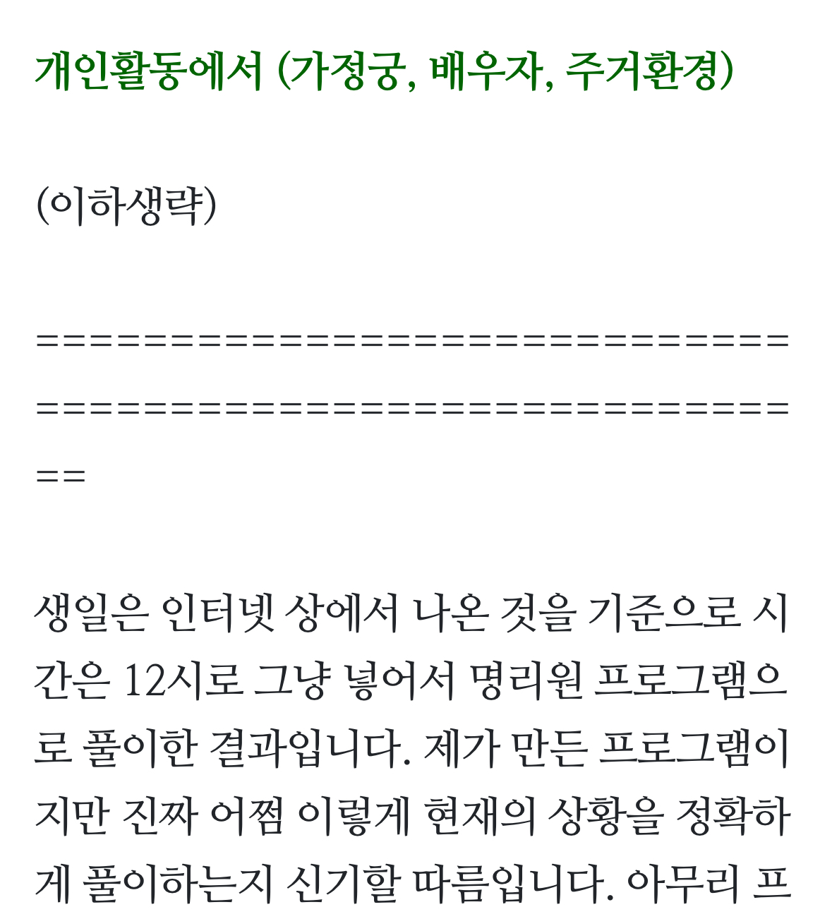 개그맨 이진호 명리원 프로그램 사주분석 결과 (2) | 2024.10.16 |