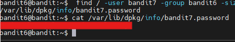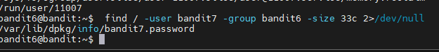 find / -user bandit7 -group bandit6 -size 33c 2>/dev/null